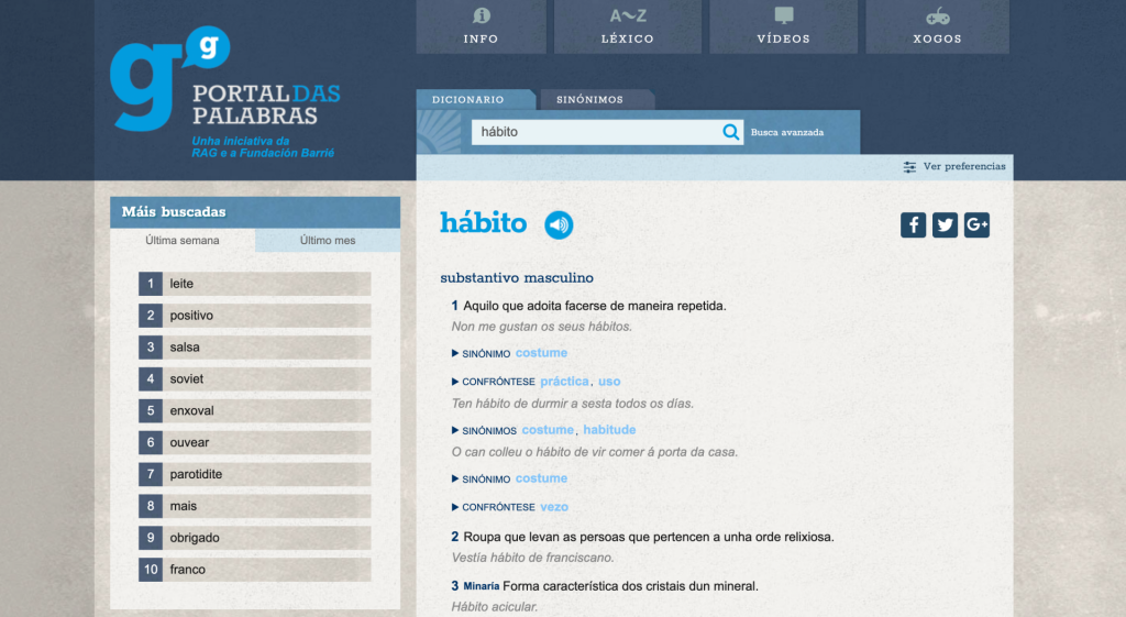 Lembra que tamén no Portal das Palabras da Real Academia Galega e a Fundación Barrié tes un dicionario en que poderás escoitar en cada entrada a pronuncia correcta da palabra.