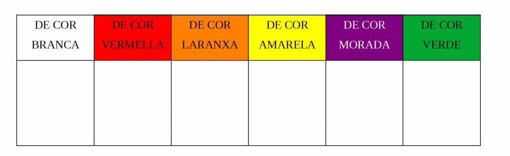 - E ti cantas cores coñeces? Se premes aquí poderás ver unha listaxe de 20 cores diferentes co seu nome.