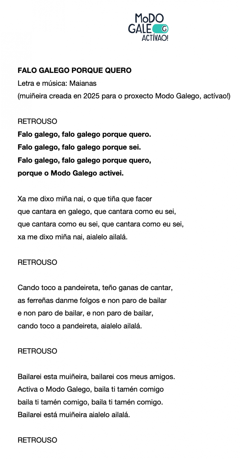 Nas escolas e instituto de Ames están a facer este mes un proxecto moi bonito para falar en galego chamado Modo Galego Actívao. Hoxe sumámonos a eles cantando e bailando o Baile ModoGalego das Maianas, un grupo de cantareiras de Ames, para que ti tamén actives o Modo Galego e sexa a nosa lingua a que saia pola túa bonita boca.