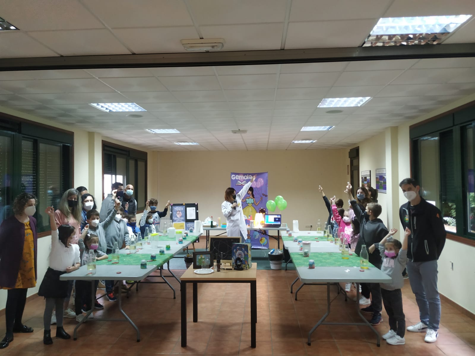 Este sábado convertimos a nosa biblioteca nun laboratorio de Ciencias para os/as máis cativos/as. A nosa nova amiga Gemola sorprendeunos a todos/as con experimentos incribles con cousas cotidiáns e que todos podemos ter en casa. Ademáis os nenos e nenas fixeron eles mesmos experimentos que despois levaron para a casa. Unha actividade moi dinámica e moi didáctica posto que achegou aos máis cativos/as a ciencia explicando de forma moi divertida experimentos moi sencilliños e nada perigosos para nenos/as. Actividade con un gran éxito entre todos/as os/as participantes.