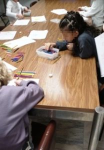 Logo dalgunhas lecturas e conversas, escribimos un pouquiño sobre nós: o que nos gusta (o calor dos raios do sol nos pés ó sacalos da auga do río no verán), o que non (as bágoas do bebé que acolamos, cando non sabemos que facer para que pare de chorar), etc. Cantamos e bailamos con María Fumaça: