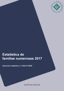 Galicia, Xunta. Consellería de Política Social, Dirección Xeral de Familia, Infancia e Dinamización Demográfica. Estatística de familias numerosas, 2017. Santiago de Compostela ; Consellería de Política Social, Dirección Xeral de Familia, Infancia e Dinamización Demográfica, 2017. 28 p. ISSN: 1139-4420